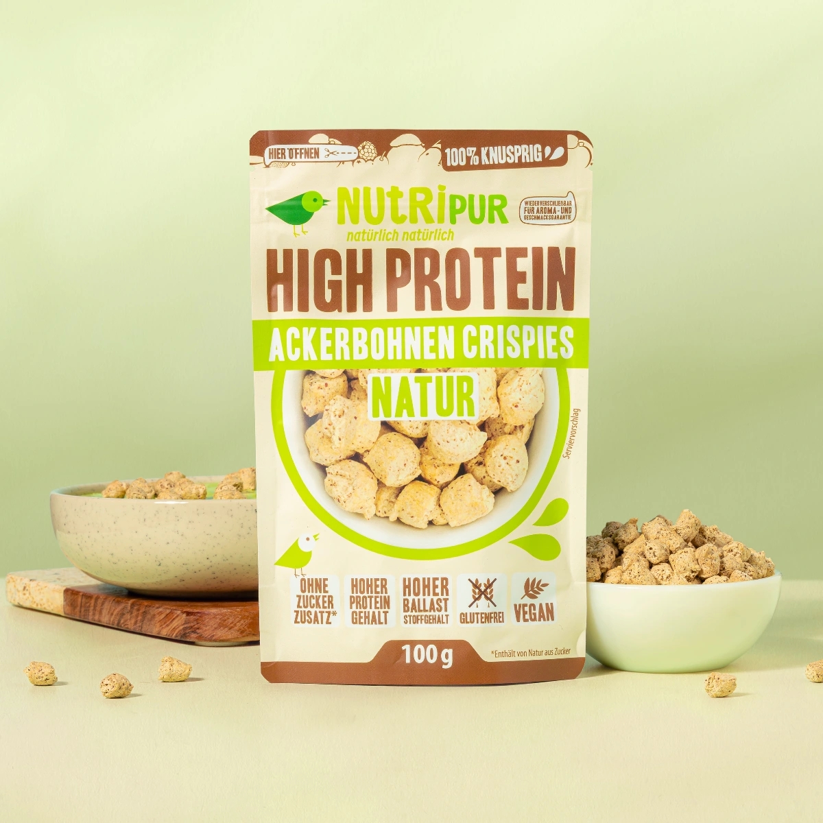 Discover the ultimate crunchiness and unbeatable protein content of our High Protein Field Bean Crispies Natural!