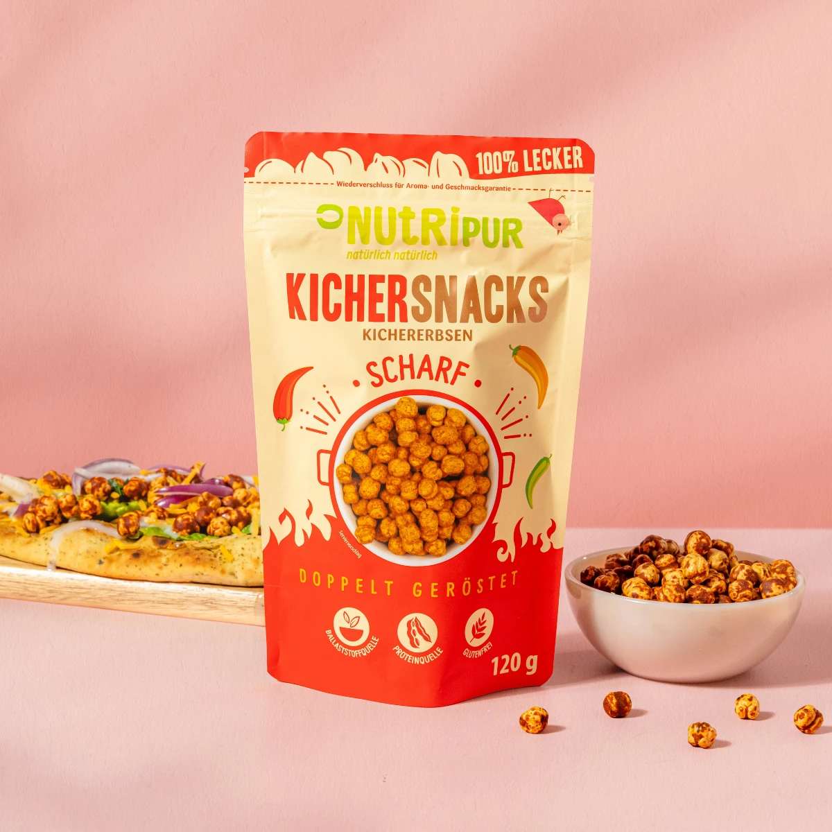 Avec les pois chiches NutriPur, l’expérience du snack arrive chez toi ou au bureau. Convient également pour les déplacements !