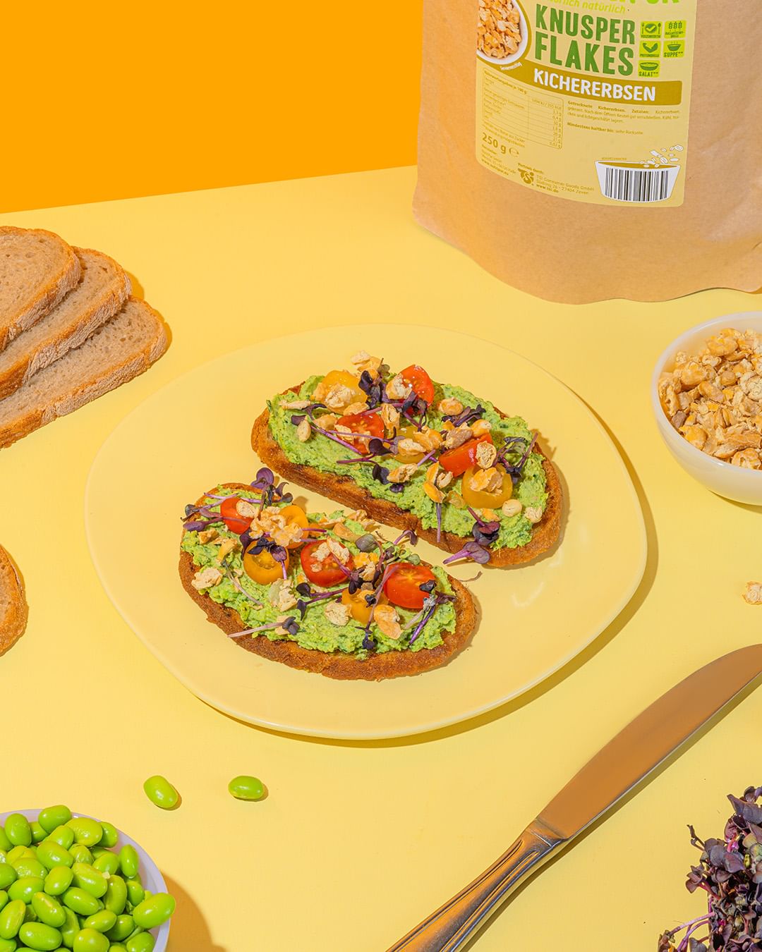 Mit den Knusperflakes aus Kichererbsen ist gesunde Ernährung im Alltag ein Klacks